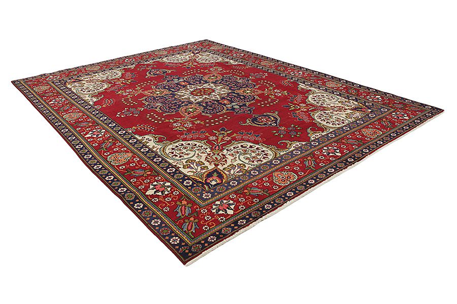 De stad Tabriz is de hoofdstad van de provincie Azerbeidzjan in Zuidwest Iran. Tot aan het einde van het "karavaan tijdperk" was de stad het meest belangrijkste centrum voor handel en tapijtweven. Tabriz voorzag het Westen van meesterwerken die werden gemaakt door bekende en capabele wevers. De hoge kwaliteit van de Tabriz tapijten heeft hen wereldwijde naamsbekendheid gegeven. Vele werkplaatsen werden opgericht waar handgeweven tapijten met erg hoge knoopdichtheid en met hoge kwaliteit materialen werden geweven. Het gebruikte zijde en de fijne kwaliteit wol plaatsen deze tapijten in een erg hoge categorie. Geen andere stad in Perzië produceerde op zo'n grote schaal zo veel gevarieerde tapijten. Met of zonder medaillon, hun patronen zitten vol fantasie en zijn stuk voor stuk uniek. Bloemen, taferelen en scènes, stanza's en gedichten versieren hen. De meestgebruikte kleuren zijn beige, blauw en rood.