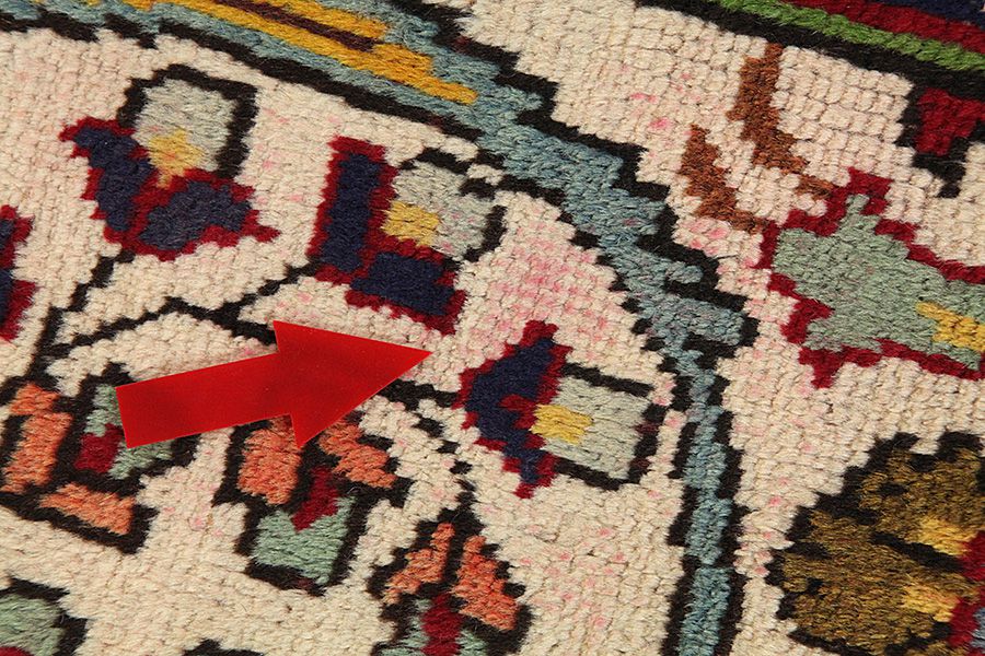 Abrash: door de verschillende gradaties van vet in de wol en het toegevoegde zout tijdens het verfproces, absorbeert de wol de kleur in afwisselende mate. Dit is voor het weven nauwelijks zichtbaar. Tijdens het weven worden echter lijnen met dezelfde kleur in het tapijt gevormd. Dit wordt Abrash (wat in het Farsis "kleine wolk" betekent) genoemd en het laat zien dat de wol niet geverfd is met chemische middelen en het benadrukt de authenticiteit en puurheid van het tapijt. Voorbeelden