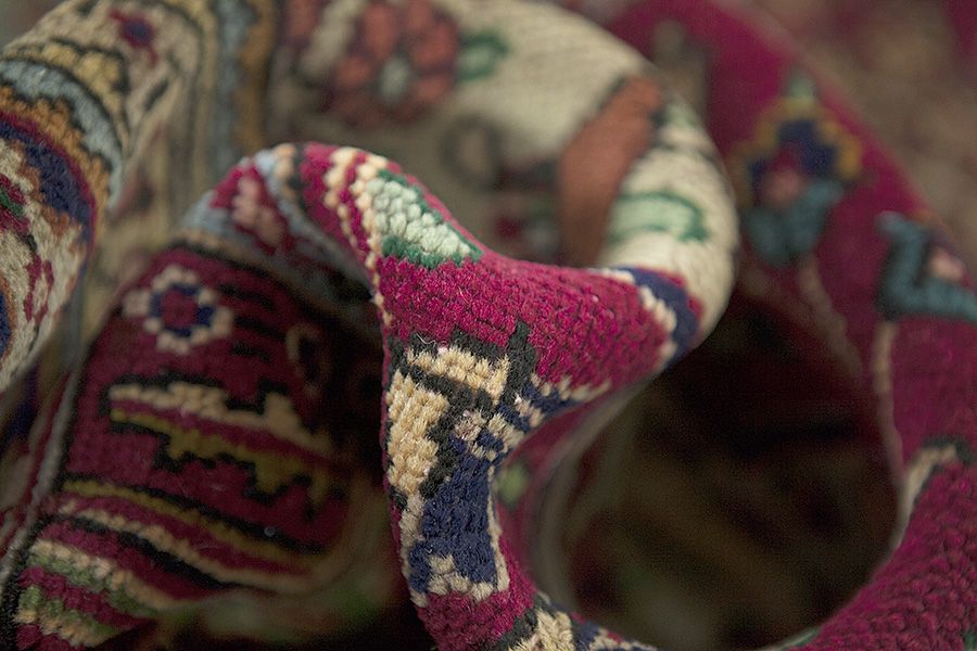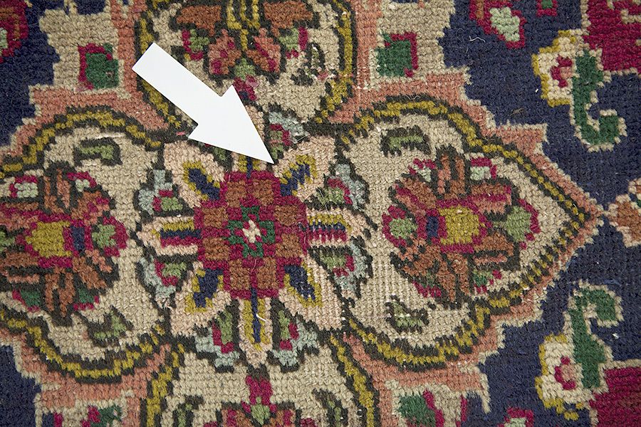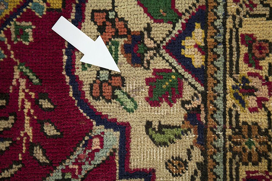 Abrash: door de verschillende gradaties van vet in de wol en het toegevoegde zout tijdens het verfproces, absorbeert de wol de kleur in afwisselende mate. Dit is voor het weven nauwelijks zichtbaar. Tijdens het weven worden echter lijnen met dezelfde kleur in het tapijt gevormd. Dit wordt Abrash (wat in het Farsis "kleine wolk" betekent) genoemd en het laat zien dat de wol niet geverfd is met chemische middelen en het benadrukt de authenticiteit en puurheid van het tapijt. Voorbeelden