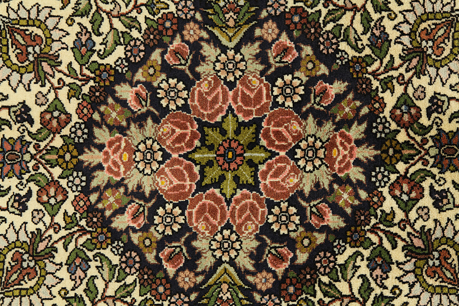 Abrash: door de verschillende gradaties van vet in de wol en het toegevoegde zout tijdens het verfproces, absorbeert de wol de kleur in afwisselende mate. Dit is voor het weven nauwelijks zichtbaar. Tijdens het weven worden echter lijnen met dezelfde kleur in het tapijt gevormd. Dit wordt Abrash (wat in het Farsis "kleine wolk" betekent) genoemd en het laat zien dat de wol niet geverfd is met chemische middelen en het benadrukt de authenticiteit en puurheid van het tapijt. Voorbeelden