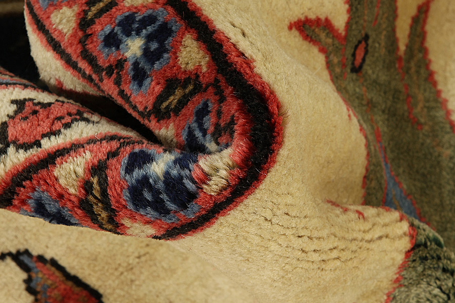 Abrash: door de verschillende gradaties van vet in de wol en het toegevoegde zout tijdens het verfproces, absorbeert de wol de kleur in afwisselende mate. Dit is voor het weven nauwelijks zichtbaar. Tijdens het weven worden echter lijnen met dezelfde kleur in het tapijt gevormd. Dit wordt Abrash (wat in het Farsis "kleine wolk" betekent) genoemd en het laat zien dat de wol niet geverfd is met chemische middelen en het benadrukt de authenticiteit en puurheid van het tapijt. Voorbeelden