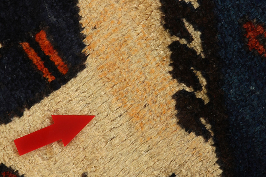 Abrash: door de verschillende gradaties van vet in de wol en het toegevoegde zout tijdens het verfproces, absorbeert de wol de kleur in afwisselende mate. Dit is voor het weven nauwelijks zichtbaar. Tijdens het weven worden echter lijnen met dezelfde kleur in het tapijt gevormd. Dit wordt Abrash (wat in het Farsis "kleine wolk" betekent) genoemd en het laat zien dat de wol niet geverfd is met chemische middelen en het benadrukt de authenticiteit en puurheid van het tapijt. Voorbeelden